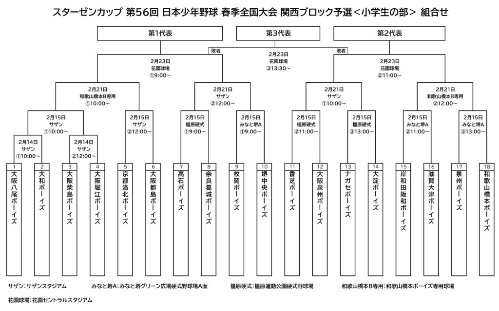 【抽選会】スターゼンカップ第56回日本少年野球春季全国大会関西ブロック予選<小学生の部>