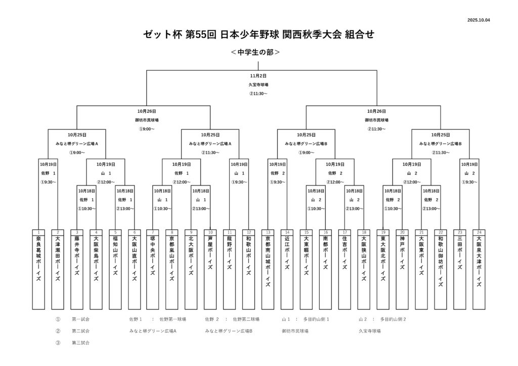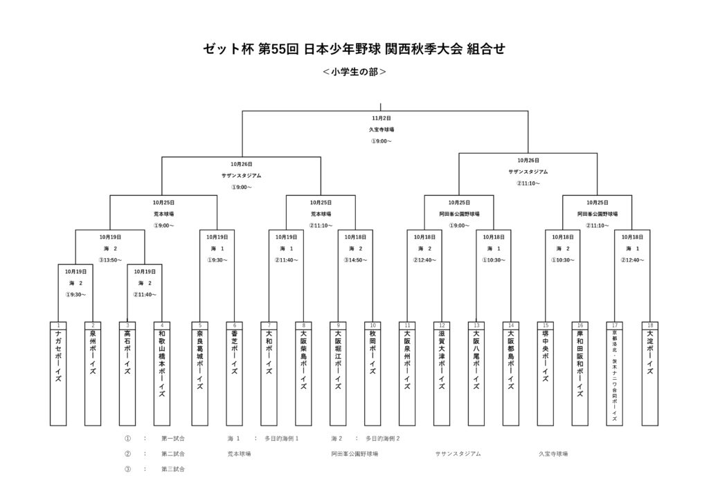 【抽選結果】ゼット杯第55回日本少年野球関西秋季大会