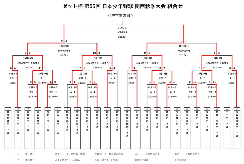 【大会結果】10/26試合結果 ゼット杯第55回関西秋季大会
